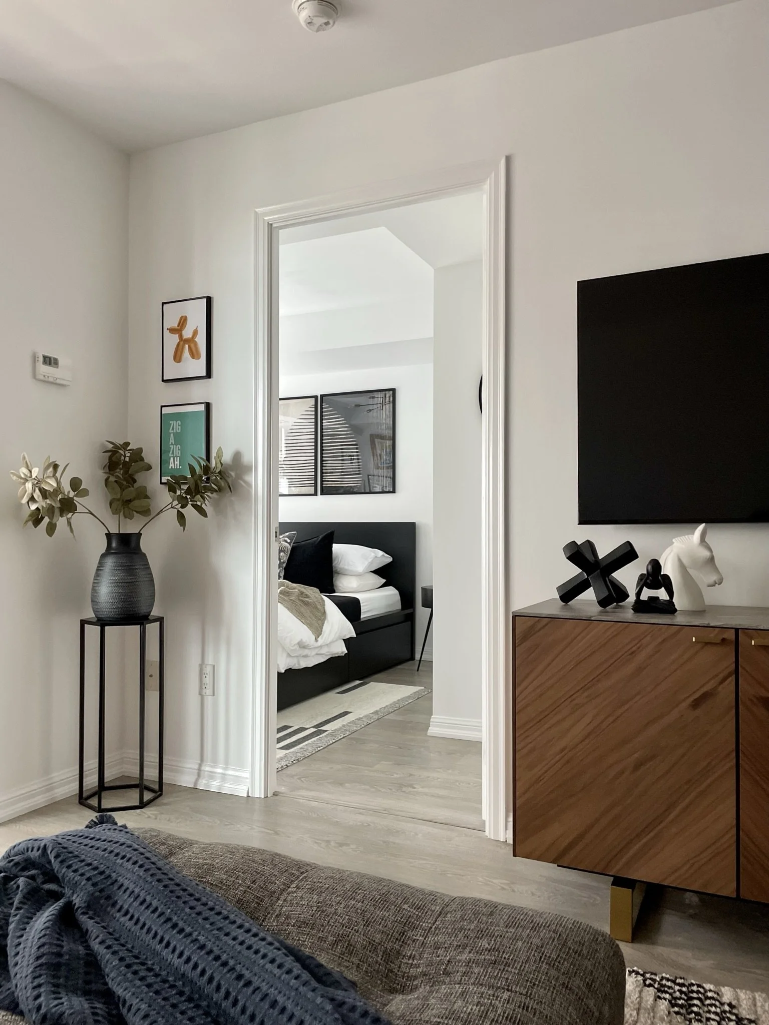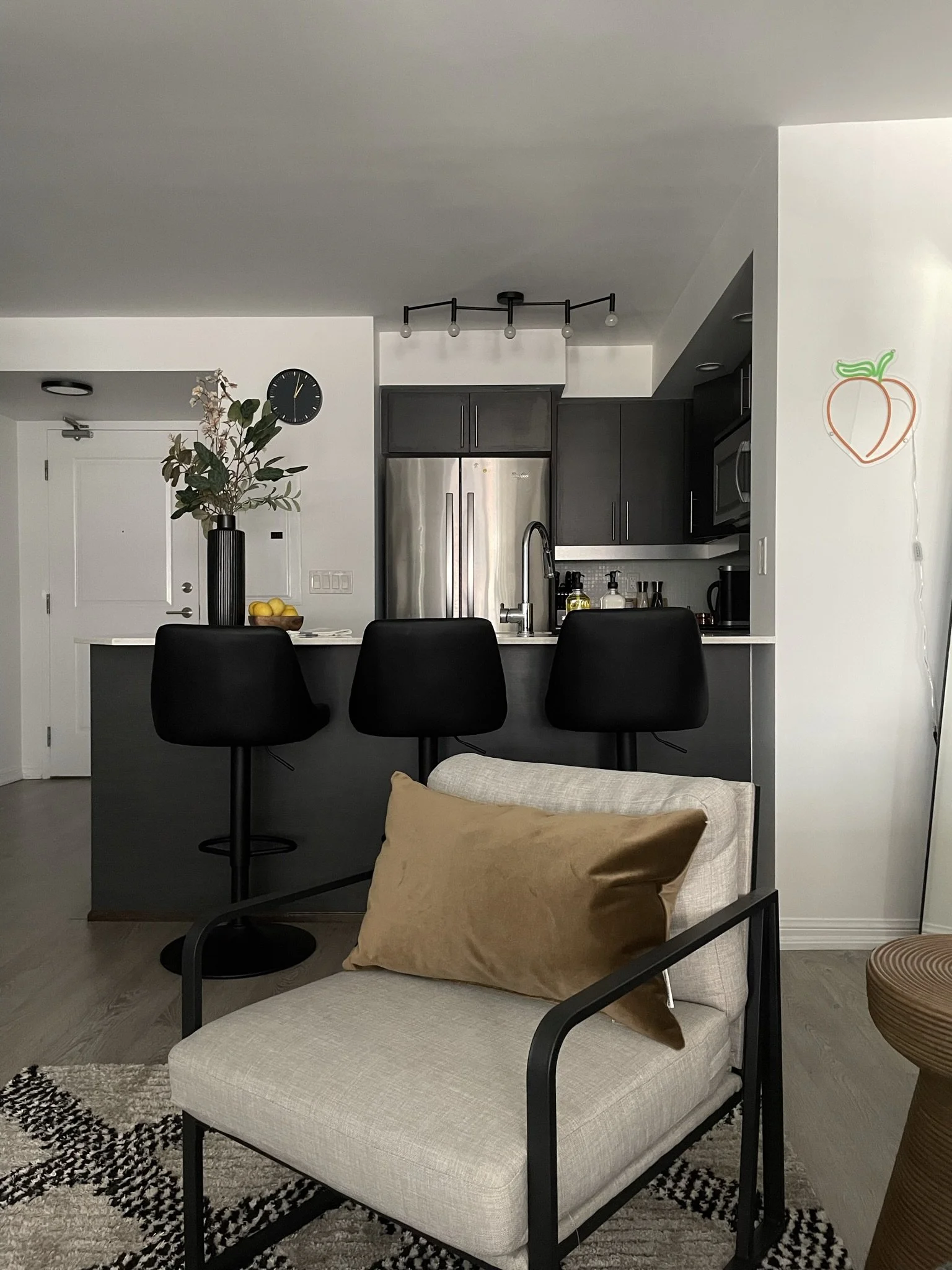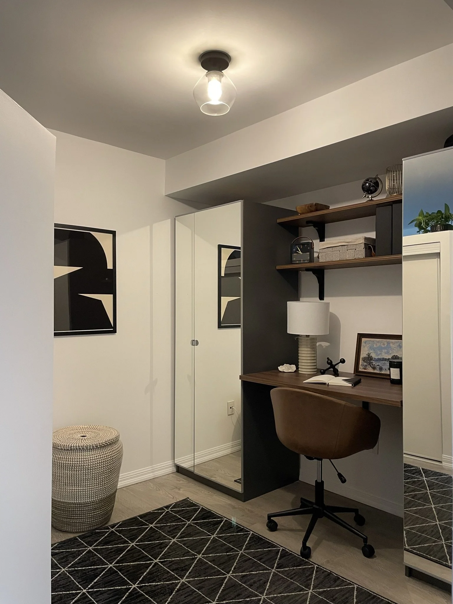 Modern, masculine, and sophisticated, with a presence that reflects the clients’ bold personality. A simple color palette was elevated through clean lines, geometric patterns, and varied materials and finishes. Personal touches truly made this design stand out.
