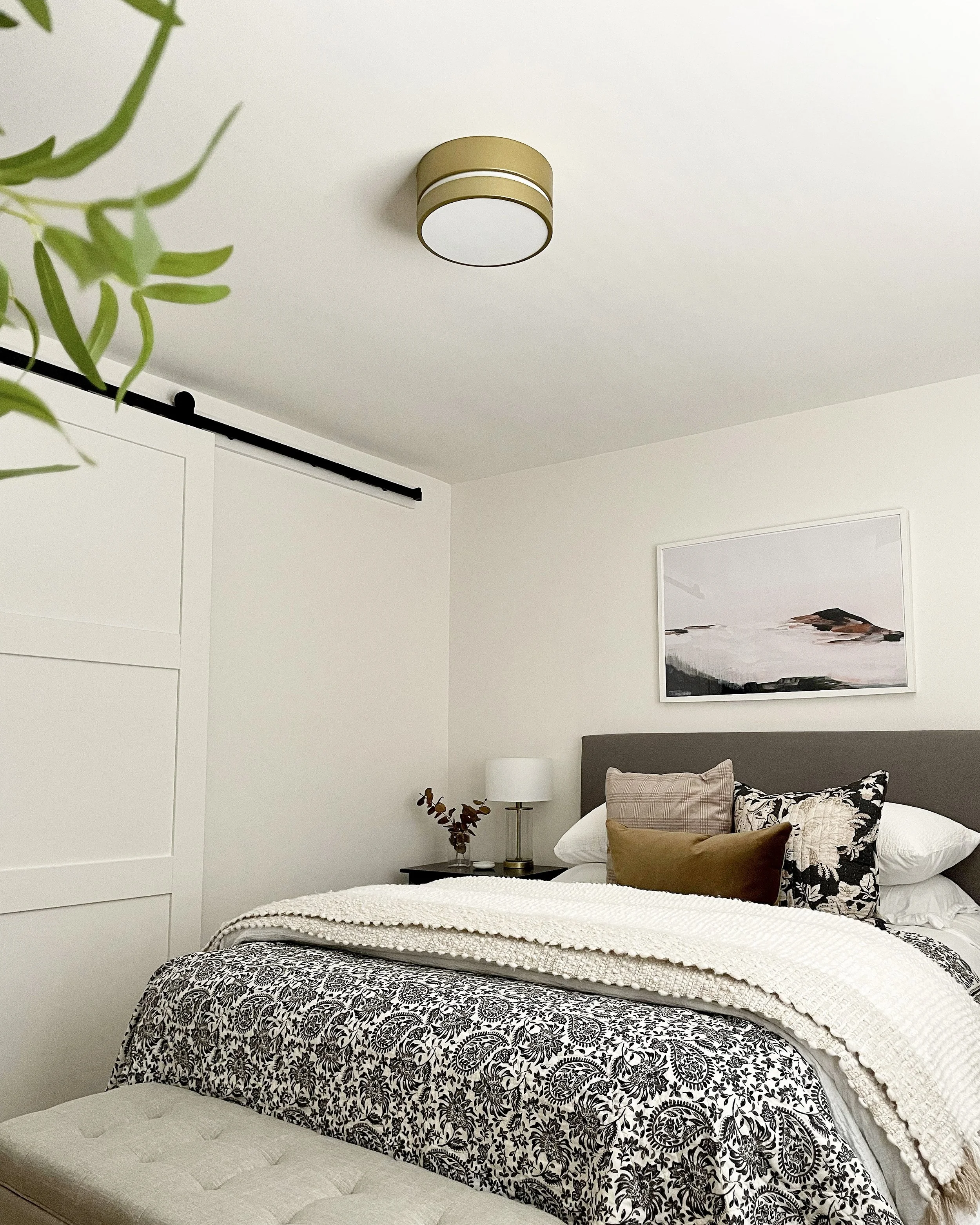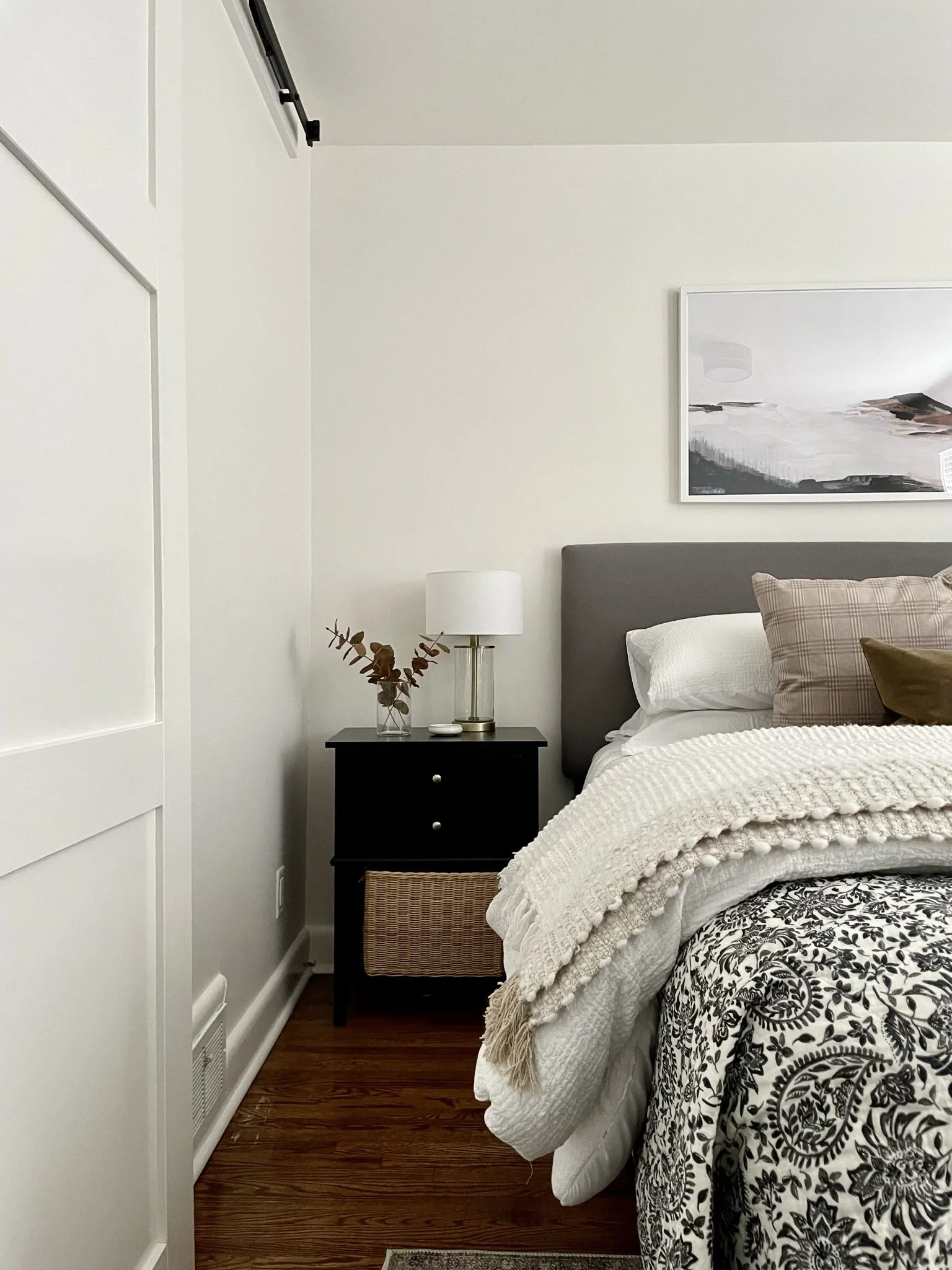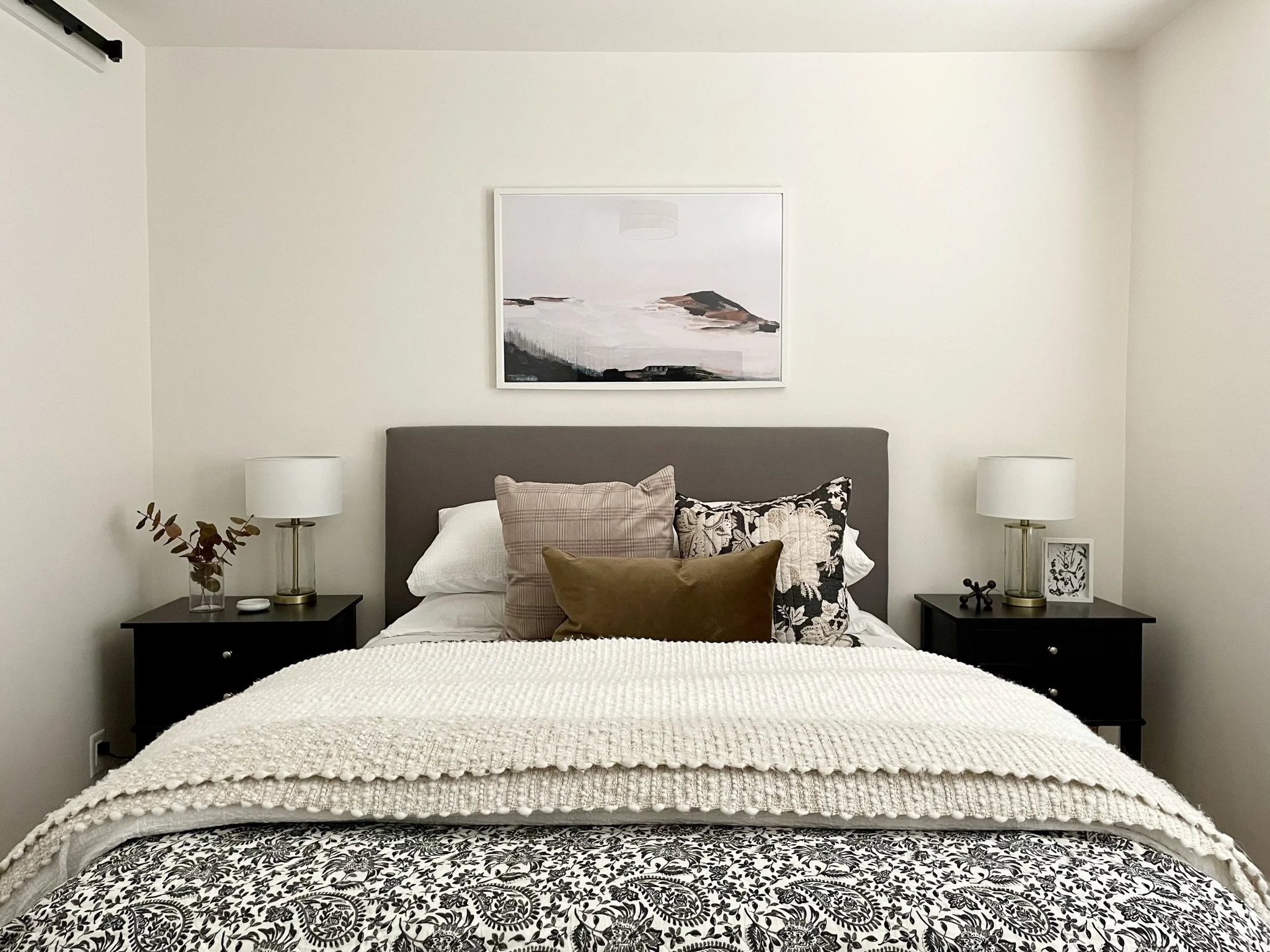 A once dark and outdated master bedroom transformed into a bright, organic retreat. By layering various textures, fabrics, and mixing prints, we achieved a soft, neutral, yet visually engaging design.